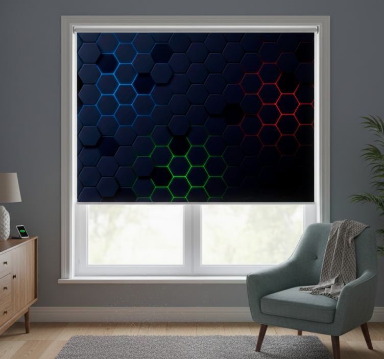 The Black roller blind with dark hexagonal 3d design black roller blind is an ideal choice for those looking to elevate their home decor. Its sophisticated design complements a variety of interior styles, making it a versatile addition to your living space. By choosing this roller blind, you not only improve the aesthetics of your room but also create a cozy atmosphere that invites relaxation and tranquility. Transform your environment with this stylish yet practical solution!