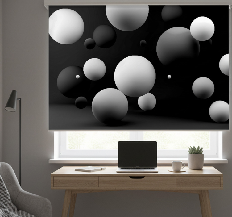 The Black roller blind with white dots on black background black roller blind is the perfect choice for anyone looking to elevate their interior design. Its unique pattern adds a playful elegance, making it an ideal accent for any room. Imagine how this stylish roller blind can transform your space, providing both functionality and flair. It enhances the atmosphere, protects against harsh sunlight, and ensures privacy, all while creating a cozy and inviting environment!