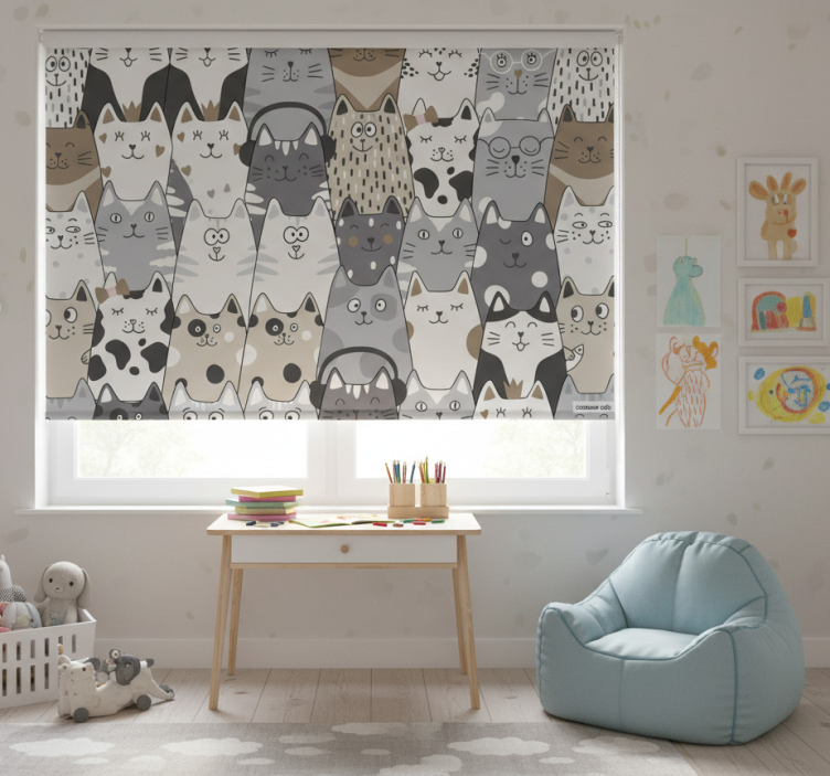 The Children room roller blind cartoon cats children room roller blind is the perfect decorative solution for any child's room! Its enchanting design sparks creativity and adds a fun element to the space, inspiring children’s imagination and play. The vibrant cat illustrations create an atmosphere of joy, making it a delightful focal point. With this roller blind, you can effortlessly enhance your child's room while providing comfort and a sense of security!