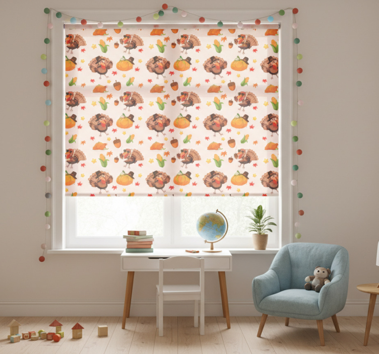 The Children room roller blind cool thanksgiving turkeys children room roller blind is not just a window covering; it’s a statement piece that enhances the overall decor of your child's room! Imagine the smiles on their faces as they gaze at the whimsical turkey designs! This roller blind brings warmth and charm to the space, making it an ideal choice for creating a cozy and inviting atmosphere. With its eye-catching graphics, it can ignite imaginative play and encourage a festive spirit throughout the season!