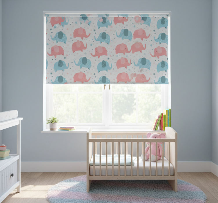 Reference: E7095Transform your child's space with our stunning Children room roller blind elephant pink and blue. This delightful design features playful elephants in soft pink and blue hues, creating a whimsical atmosphere perfect for any children's room. The charming illustration captures the imagination while providing a functional solution for light control and privacy. With easy assembly and disassembly in just two clicks, this roller blind is not only visually appealing but also practical. It's easy to clean, ensuring that your child's room remains fresh and vibrant!