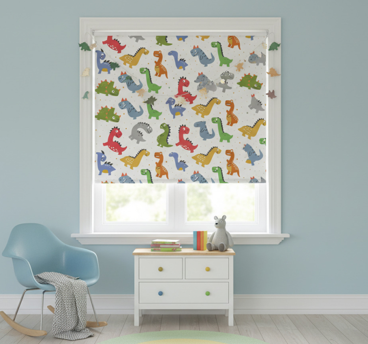 Reference: E6879Transform your child's space with our Children room roller blind featuring cute dinosaur designs. This delightful roller blind showcases vibrant dinosaurs in playful colors, making it an enchanting addition to any children's room. With easy assembly in just 2 clicks, this blind is designed for convenience and charm. Not only does it protect the room from direct sunlight, but it also enhances the overall decor and provides the perfect touch of whimsy!