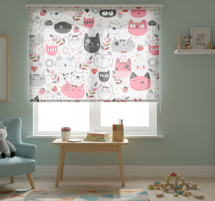 Children room roller blind illustrated cats