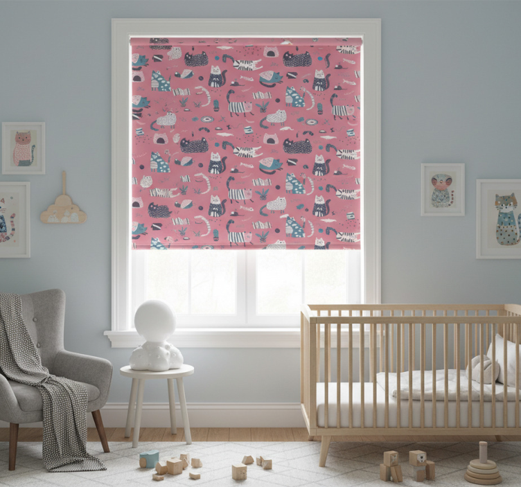 Reference: E7067Transform your child's space with the enchanting Children room roller blind nordic kitties design, featuring adorable kitty motifs that bring a touch of Nordic charm. This delightful roller blind not only enhances the aesthetic appeal of any room but also offers functionality with its easy assembly, easy cleaning, and quick disassembly. Protect your little one's room from direct sunlight while maintaining their privacy, all while allowing for temperature regulation. Choose from three different textures to perfectly balance light and privacy!
