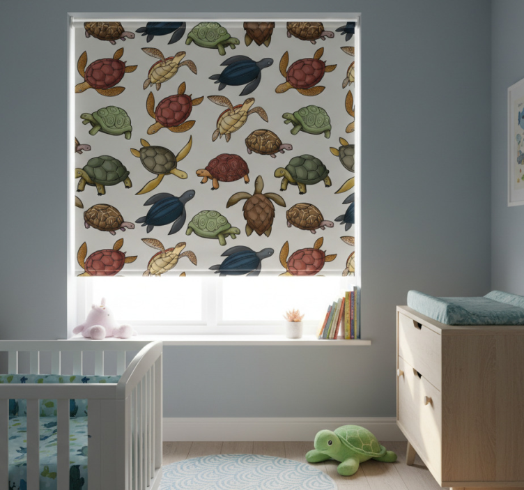 Choosing the Children room roller blind turtle variety children room roller blind for your child's room is not just about aesthetics; it's about creating an inspiring space that fosters creativity and comfort. The enchanting turtle design adds a magical touch, making the room a delightful retreat. With its customizable measurements and three texture options, it perfectly blends functionality with style, making it an ideal choice for any children's room decoration.