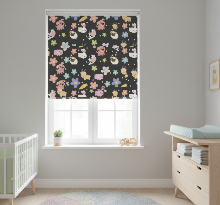 Reference: E6912Transform your child's space with our Children room roller blind wild animals and rabbits! This delightful design features playful wild animals and adorable rabbits, creating a whimsical atmosphere that sparks imagination. The vibrant colors and charming illustrations bring joy to any room, while the easy assembly and disassembly in just two clicks make it a practical choice for parents. This roller blind not only enhances the decor but also provides functionality by regulating room temperature and offering privacy when lowered.