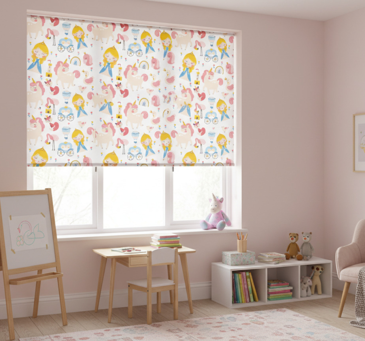 The Children room roller blind with cartoon princes and unicorn children room roller blind is the perfect statement piece to elevate your child's bedroom decor! With its captivating design, it inspires creativity and joy, making the room a playful sanctuary. The delightful imagery of princes and unicorns captivates young hearts and enhances the overall ambiance, encouraging imaginative play and sweet dreams!