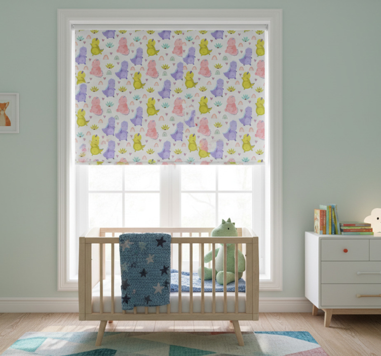 Children room roller blind with colorful dinosaur pattern