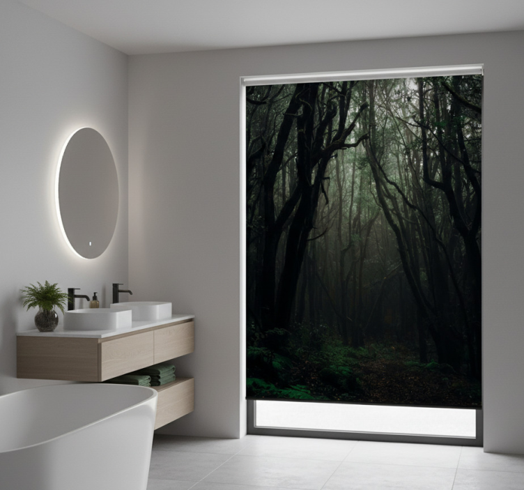Reference: E6130Transform your living space with our stunning Dark mystic woods tree roller blind, which showcases a beautiful design featuring enchanting forest imagery that captures the essence of nature. This roller blind not only enhances your interior decor but also provides functionality with its easy assembly in just two clicks, effortless cleaning, and the ability to regulate room temperature. Its unique design allows for privacy when lowered while still letting in soft, filtered light, making it a perfect addition to any room!