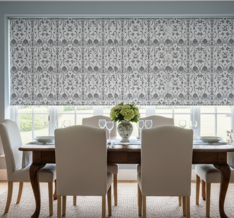 Grey french provincial style dining room roller blind