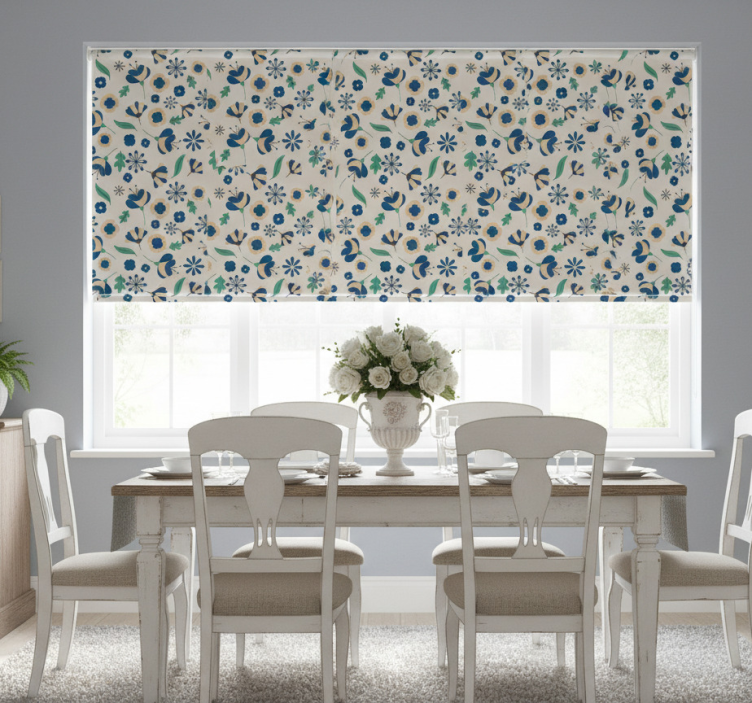 The Dining room roller blind in french provincial white floral dining room roller blind adds a touch of sophistication to your decor, transforming your dining area into a cozy retreat. This roller blind not only enhances your space with its elegant design but also provides practical benefits such as protecting against direct sunlight and offering privacy when lowered. Embrace the beauty and functionality of this stunning piece, and let it inspire your dining experience!
