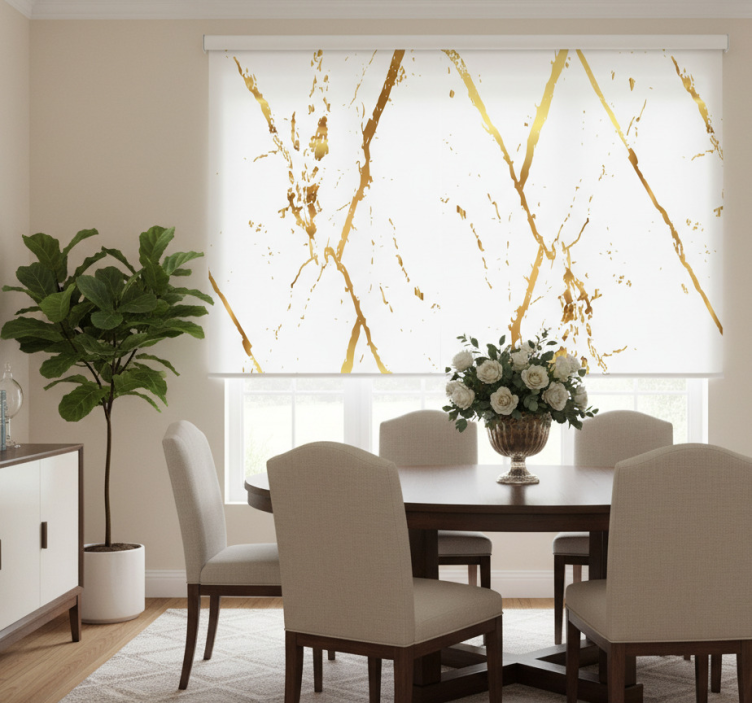 The Dining room roller blind in gold marble stripes dining room roller blind is an essential addition to your home decor. Its stunning gold marble design not only elevates the aesthetic appeal of your dining space but also creates an inviting atmosphere for gatherings and family meals. Imagine the compliments from guests as they admire the unique style and elegance it brings to your home! Let this roller blind inspire you to create a beautiful sanctuary where you can entertain and relax.