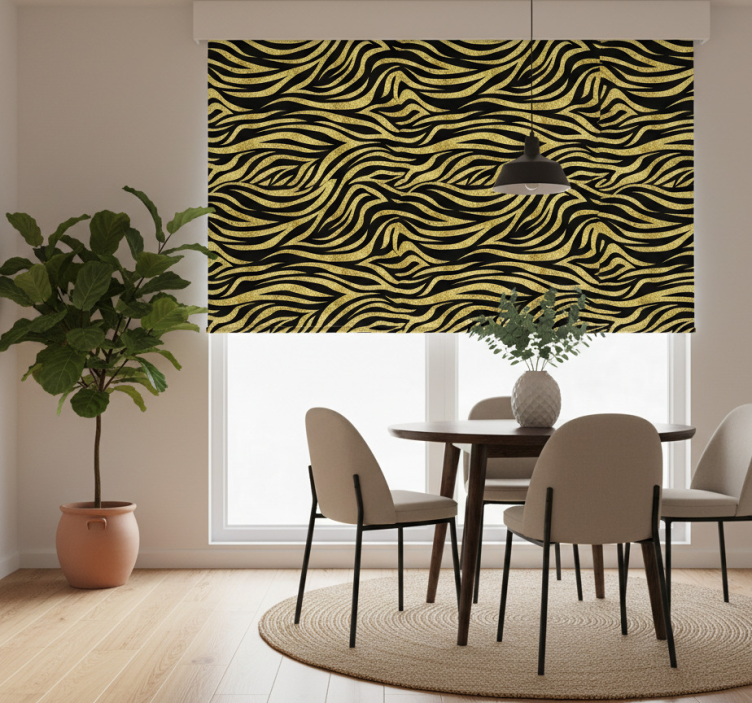Dining room roller blind in golden zebra pattern