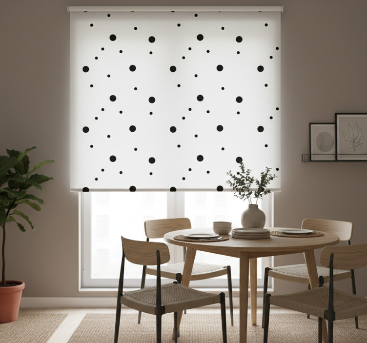 Elevate your interiors with the Dining room roller blind in nordic style black dots dining room roller blind. This elegant piece brings a touch of sophistication and style, making it perfect for any decor theme. The striking black dots against a soft backdrop create a visual harmony that invites warmth and tranquility into your space. Imagine hosting dinners with friends and family, all while basking in the beauty of this stylish blind!