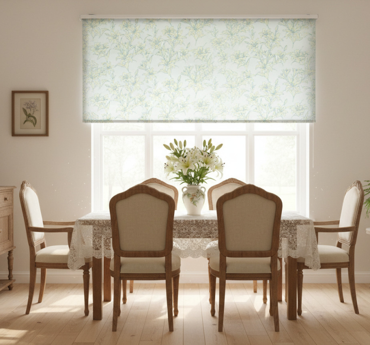 The Dining room roller blind lilies vintage floral pattern dining room roller blind is not just a functional window treatment; it is a statement piece that enhances your home’s decor! Imagine how this gorgeous blind can transform your dining area into a serene oasis. The vintage floral design brings nature indoors, creating a tranquil environment perfect for entertaining guests or enjoying quiet family dinners. Elevate your home’s aesthetic with this exquisite roller blind that seamlessly blends style and practicality!