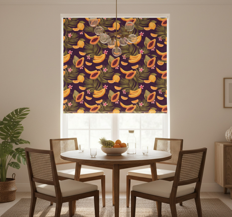 The Dining room roller blind tropical fruit design dining room roller blind is the perfect decorative element to elevate your dining area! Imagine hosting friends and family in a space that radiates warmth and joy, enhanced by the delightful patterns of tropical fruits. Not only does this roller blind improve your room’s decor, but it also creates an inviting ambiance that brings the essence of summer indoors, making every meal a festive occasion!