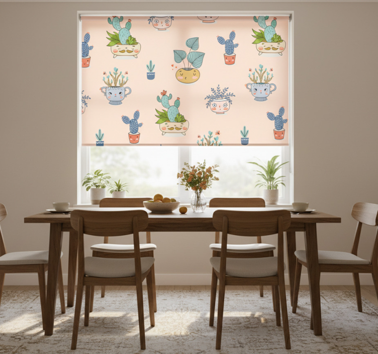 Transform your space with the Dining room roller blind with animated plant pots dining room roller blind, the ideal decorative choice for any dining area! This roller blind not only enhances your room’s aesthetic with its lively design but also provides a sense of tranquility and warmth. Imagine dining under the charming sight of animated plant pots, creating a welcoming atmosphere for family and friends. Elevate your interior decor and make every meal a delightful experience!