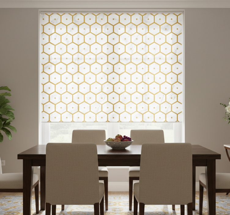 Dining room roller blind with hexagonal gold marble