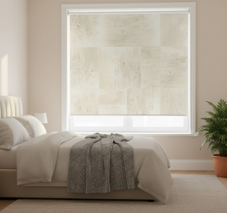 Gray roller blind with elegant stone design