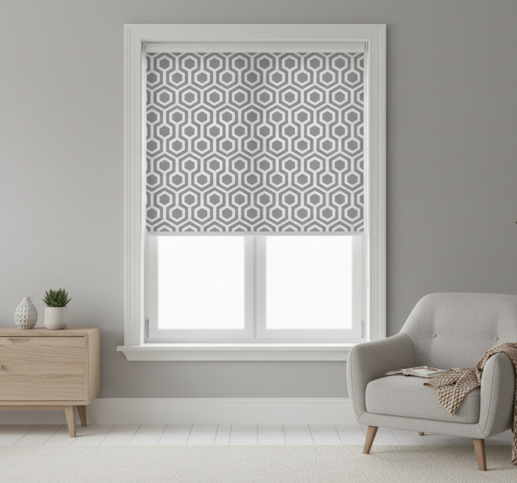 The Gray roller blind with hexagonal grey pattern gray roller blind is an excellent choice for enhancing your home’s aesthetic appeal. Its unique hexagonal design adds a touch of sophistication while allowing you to express your personal style. This roller blind is perfect for those looking to create a serene and stylish atmosphere, as it artfully balances functionality with elegance. By choosing this eye-catching piece, you can effortlessly refresh your space and inspire a sense of tranquility!