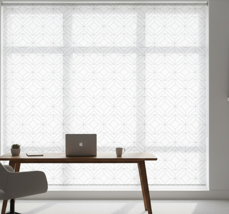 Home office roller blind geometric white pattern