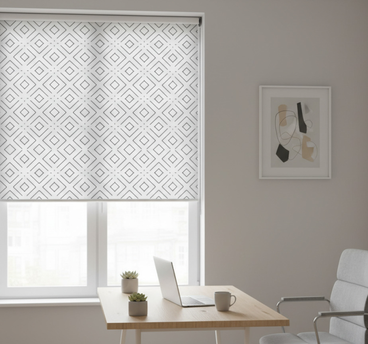 The Home office roller blind white geometric pattern home office roller blind is the perfect decorative element to inspire creativity and productivity. Its contemporary design seamlessly blends with various interior styles, making it an ideal choice for anyone looking to refresh their workspace. Let this roller blind serve as a canvas that complements your personal style, creating an inviting atmosphere that motivates you to achieve your goals!