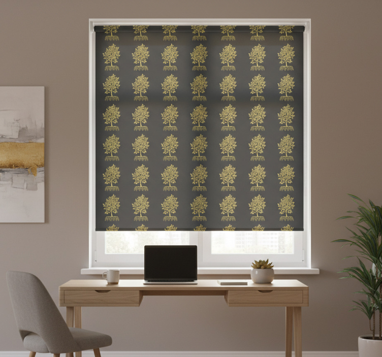 The Home office roller blind with golden tree outline home office roller blind is an inspirational choice for anyone looking to elevate their home decor. Its unique design combines artistry with functionality, transforming your workspace into a serene and stylish environment. Imagine working under the gentle glow of the golden tree outline, which not only serves as a stunning focal point but also inspires creativity and focus. This roller blind is more than just a window covering; it’s a statement piece that enhances the overall ambiance of your home office!