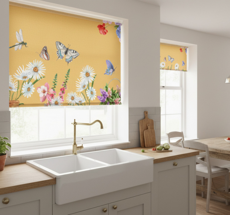 The Kitchen roller blind daisy flower and butterflies kitchen roller blind is more than just a window covering; it’s an invitation to transform your kitchen into a cheerful haven! Its lovely floral and butterfly design brings a touch of nature indoors, inspiring joy and creativity. Imagine sipping your morning coffee while basking in the warmth of sunlight filtered through this charming blind. It’s the perfect way to enhance your home’s decor, making every moment spent in the kitchen a delightful experience!