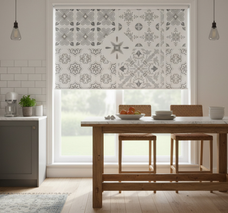 Choosing the Kitchen roller blind in grey mosaic tiles kitchen roller blind elevates your kitchen’s ambiance, turning it into a stylish retreat! The unique grey mosaic design complements various color schemes, allowing you to express your personal style. This roller blind enhances the overall aesthetics of your kitchen, making it a welcoming space for family and friends. Let your kitchen shine with this decorative piece that marries form with function!