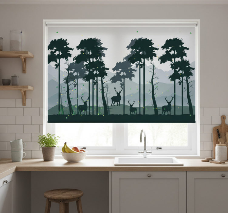 The Kitchen roller blind silhouette forest scandi kitchen roller blind is an excellent choice for anyone looking to enhance their kitchen's decor. Its unique design adds a touch of sophistication while creating a serene environment. Imagine enjoying your morning coffee with the gentle light filtering through the forest pattern, inspiring a peaceful start to your day! This roller blind not only beautifies your space but also allows you to express your personal style effortlessly.