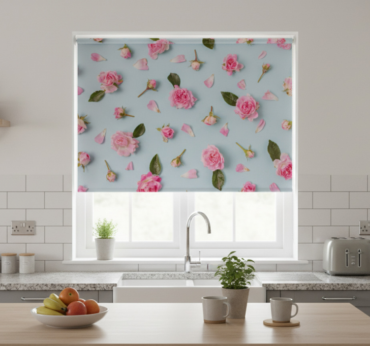 The Kitchen roller blind with blue background of roses kitchen roller blind serves as a delightful focal point in your kitchen or dining area. Its charming floral design inspires warmth and joy, transforming mundane spaces into inviting retreats. Imagine enjoying your morning coffee under the soft, filtered light that this roller blind provides! With its ability to enhance the aesthetic appeal of your home, this roller blind is a must-have for anyone looking to elevate their interior decor.
