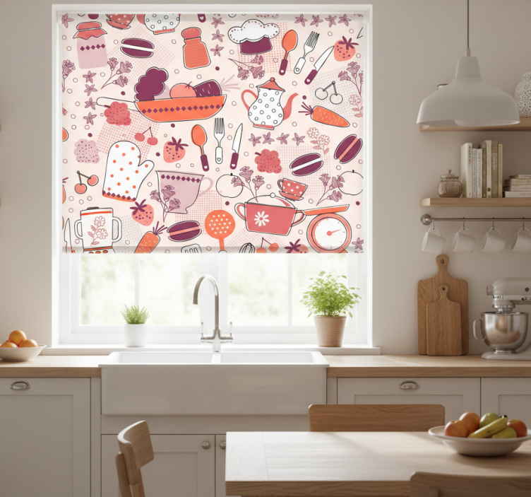 This Kitchen roller blind with heart-shaped food design kitchen roller blind is an exceptional choice for enhancing the aesthetic of your kitchen. Imagine the joy it brings as it transforms your space with its cheerful design! Beyond its beauty, it serves practical purposes by providing privacy and regulating room temperature. This stunning blind is perfect for those who appreciate a blend of style and functionality, inspiring a warm and inviting atmosphere in your home!