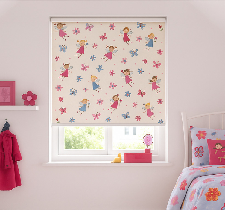 Reference: E5879Transform your teen's space with our Happy little fairies teenage bedroom roller blind, featuring a whimsical design that brings joy to any room! This enchanting roller blind showcases delightful fairies dancing among vibrant flowers, creating a magical atmosphere. Its easy assembly in just two clicks, simple cleaning, and disassembly make it a practical choice for busy households. Not only does it protect your space from direct sunlight, but it also offers privacy when lowered, allowing for a serene retreat.