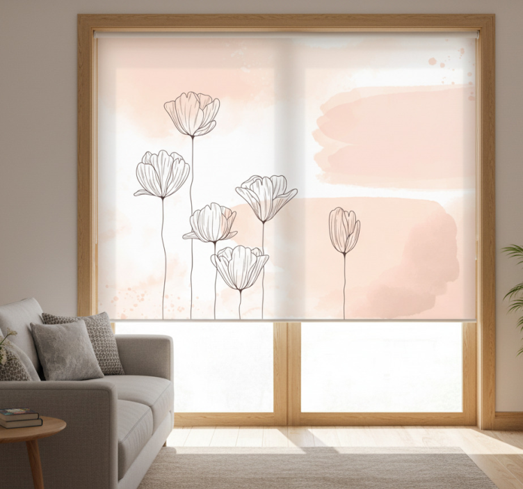 Living room roller blind floral line