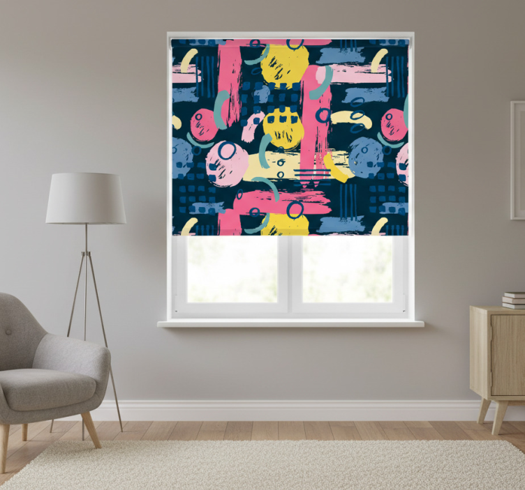 Living room roller blind in colorful abstract design