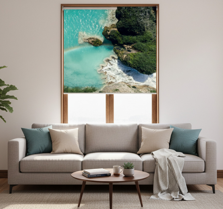 Reference: E8601Transform your space with our stunning Living room roller blind lake to sea connection. This beautifully designed roller blind features a captivating graphic that seamlessly blends serene lake views with the expansive beauty of the sea. The unique imagery not only enhances your living area but also inspires tranquility and peace. This roller blind is crafted for easy assembly and disassembly, allowing you to maintain cleanliness effortlessly. It protects your room from direct sunlight while providing privacy when lowered, making it a versatile addition to your home decor.