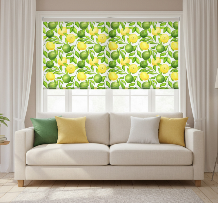 The Living room roller blind lemons and limes living room roller blind transforms any space into a cheerful retreat. This eye-catching design not only enhances your decor but also adds a touch of personality to your living area. Imagine the joy of having a unique roller blind that speaks to your love for fresh, fruity aesthetics! It's a simple yet powerful way to uplift your home and create an inviting atmosphere for friends and family.