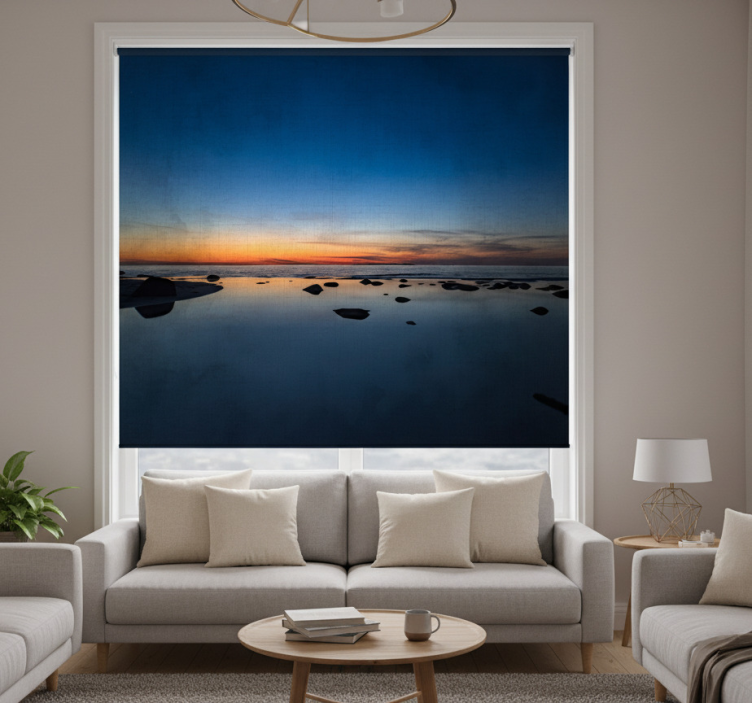 The Living room roller blind nordic sunset at sea living room roller blind is not just a functional item; it is an inspirational piece that elevates your interior décor. By incorporating this roller blind into your living room, you embrace a design that harmonizes with nature's beauty, creating a calming atmosphere that invites relaxation. It's an effortless way to enhance your space, making it feel more inviting and stylish!