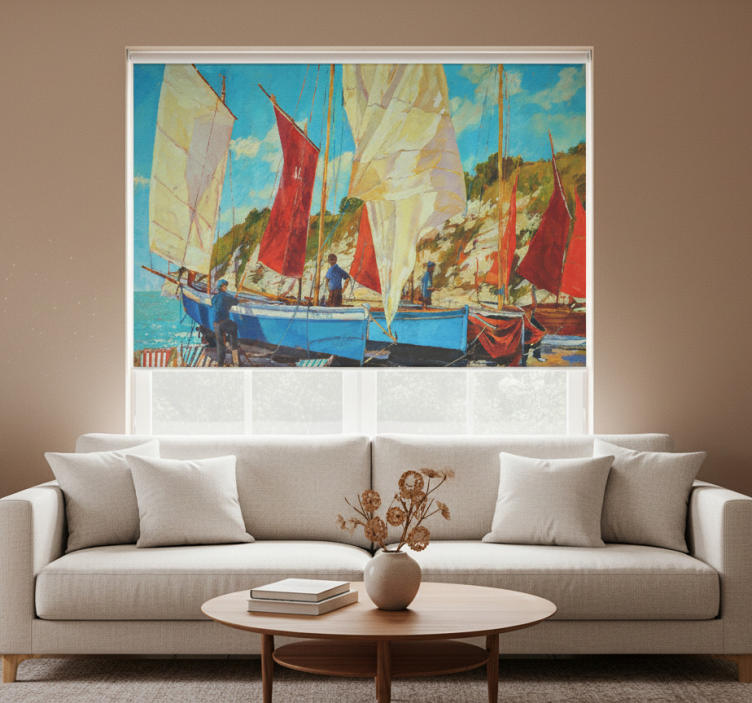 The Living room roller blind three boats on the water living room roller blind elevates your decor with its captivating design. Imagine the charm it brings to your space, inviting a sense of peace and relaxation. This roller blind is not just a window treatment; it is a statement piece that enhances the beauty of your living room while providing essential privacy and light control. Let the serene image of boats on the water inspire you and your guests, creating a warm and welcoming environment that you can enjoy every day!