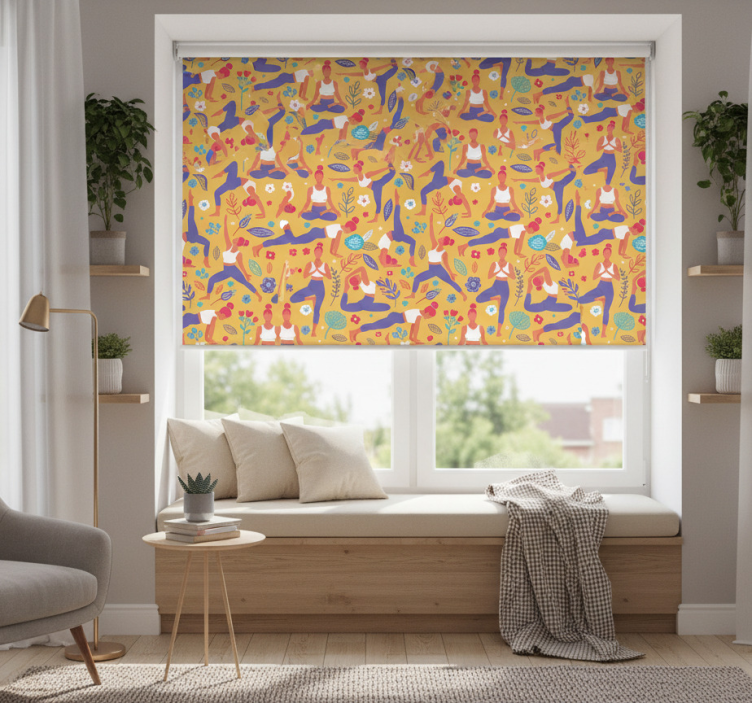 Modern roller blind hand drawn yoga design