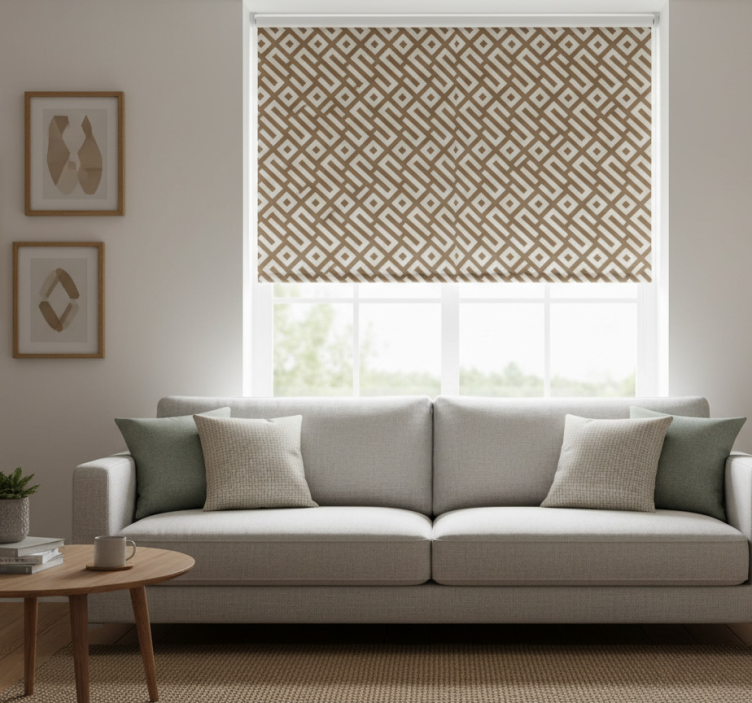 The Modern roller blind in earthy geometric design modern roller blind is not just a window covering; it is a statement piece that transforms your interior decor! Its unique design adds a touch of sophistication and style, making it perfect for living rooms, bedrooms, or any area where you desire a blend of functionality and fashion. By incorporating this roller blind, you can effortlessly elevate your space while enjoying the practical benefits of light control and privacy. Let your windows reflect your taste!