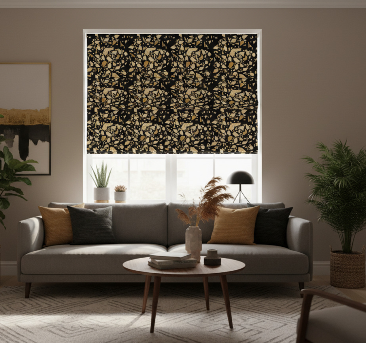 The Modern roller blind terrazzo style black gold modern roller blind is the perfect choice for those looking to elevate their home decor. Its unique design adds a chic flair, making it an ideal addition to contemporary interiors. Imagine how effortlessly it can transform your space, creating a stylish ambiance that inspires creativity and comfort!