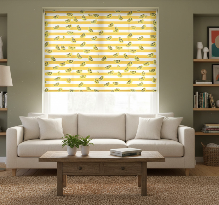 Transform your living space with our Modern roller blind with lemon symbols design modern roller blind. This eye-catching piece not only serves a practical purpose but also elevates your home decor with its cheerful and vibrant aesthetic. Imagine the joy it brings to your room, creating an inviting atmosphere that sparks creativity and happiness! It's the perfect addition to brighten up any space while providing the privacy and light control you desire.