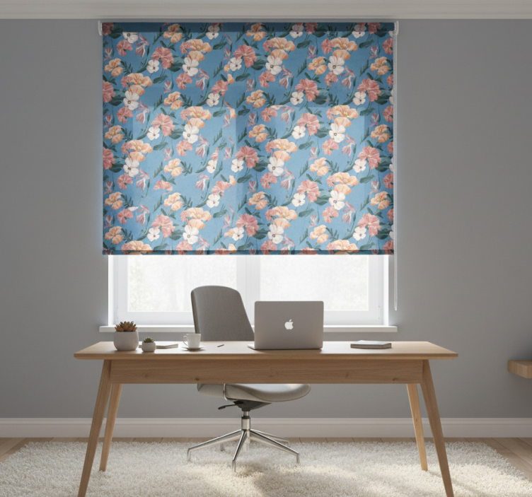 The Office roller blind flowerprint 'jeans floral' office roller blind is an exceptional choice for those looking to elevate their interior decor. Its enchanting floral print paired with a chic jeans texture creates a lively atmosphere that inspires creativity and positivity. Imagine working in a space where beauty meets functionality, making every day feel like a breath of fresh air!