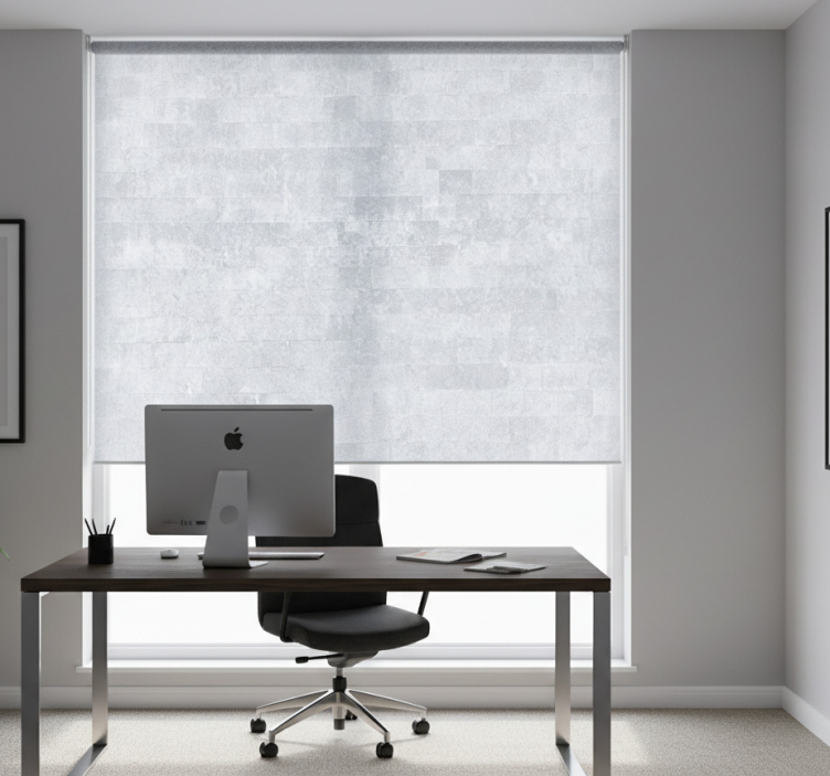 Office roller blind in aged gray brick pattern