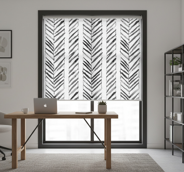 Office roller blind in black and white geometric design