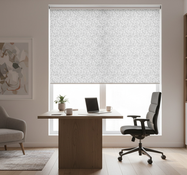 Reference: E7350Transform your space with our Office roller blind ornamental vintage flowers design, featuring an enchanting array of vintage floral patterns that seamlessly blend elegance and functionality. With its easy assembly in just two clicks and the option to choose from three different textures, this roller blind not only enhances your decor but also serves practical purposes, including privacy and temperature regulation. Enjoy the beauty of ornamental vintage flowers while effectively managing sunlight with this stunning addition to your office!
