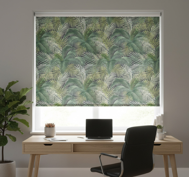 Office roller blind with green palm leaves design