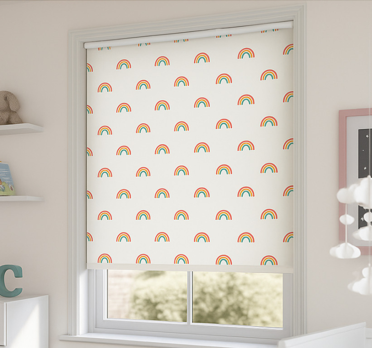 Scandinavian roller blind in vibrant rainbow hues