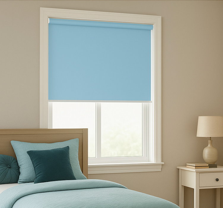 Reference: E5847Transform your space with our stunning Sky blue colour teenage bedroom roller blind! This beautifully designed roller blind features easy assembly in just 2 clicks, making it a breeze to install. It's easy to clean, ensuring that your window area stays fresh and inviting. The blind effectively protects the room from direct sunlight while providing privacy when lowered. You can also regulate the room temperature, ensuring comfort throughout the day. With its elegant design and functionality, it not only enhances your decor but also offers security by allowing you to see outside without being seen. Plus, it comes in 100% customizable measurements, with three different textures to choose from based on your light and privacy needs!